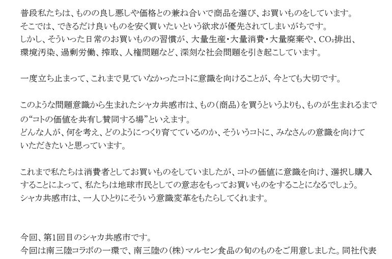 南三陸町の昆野さん(社会企業家)とのリレーインタビューが出会いのきっかけでマルセン食品の三浦さんとの南三陸コラボ『夏の贈り物』を知りました。
